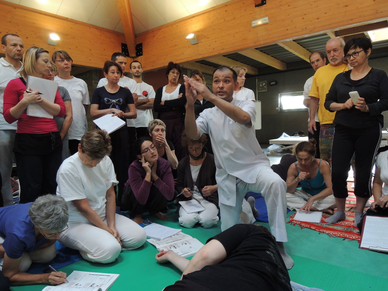 「指圧」という言葉を聞くと日本人にはある種の古臭さを感じるかも知れませんが、指圧後進国の欧米ではトレンドで、実力の有る日本人指圧講師を招いては研修を受け、スキルアップを重ねております。私、岡本はフリーの講師として17年間、フランス全土から招かれ、仏人指圧師への指圧実技指導・最新医学知識の普及を図り続けております。